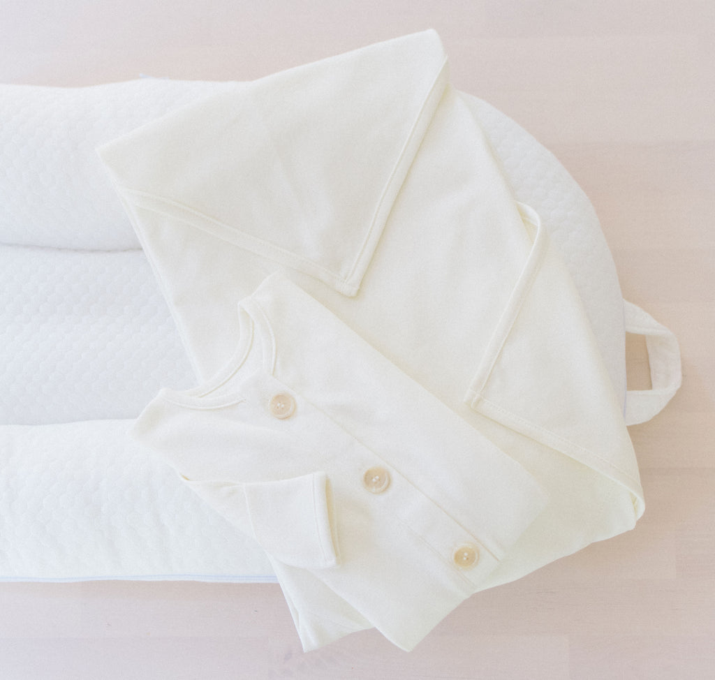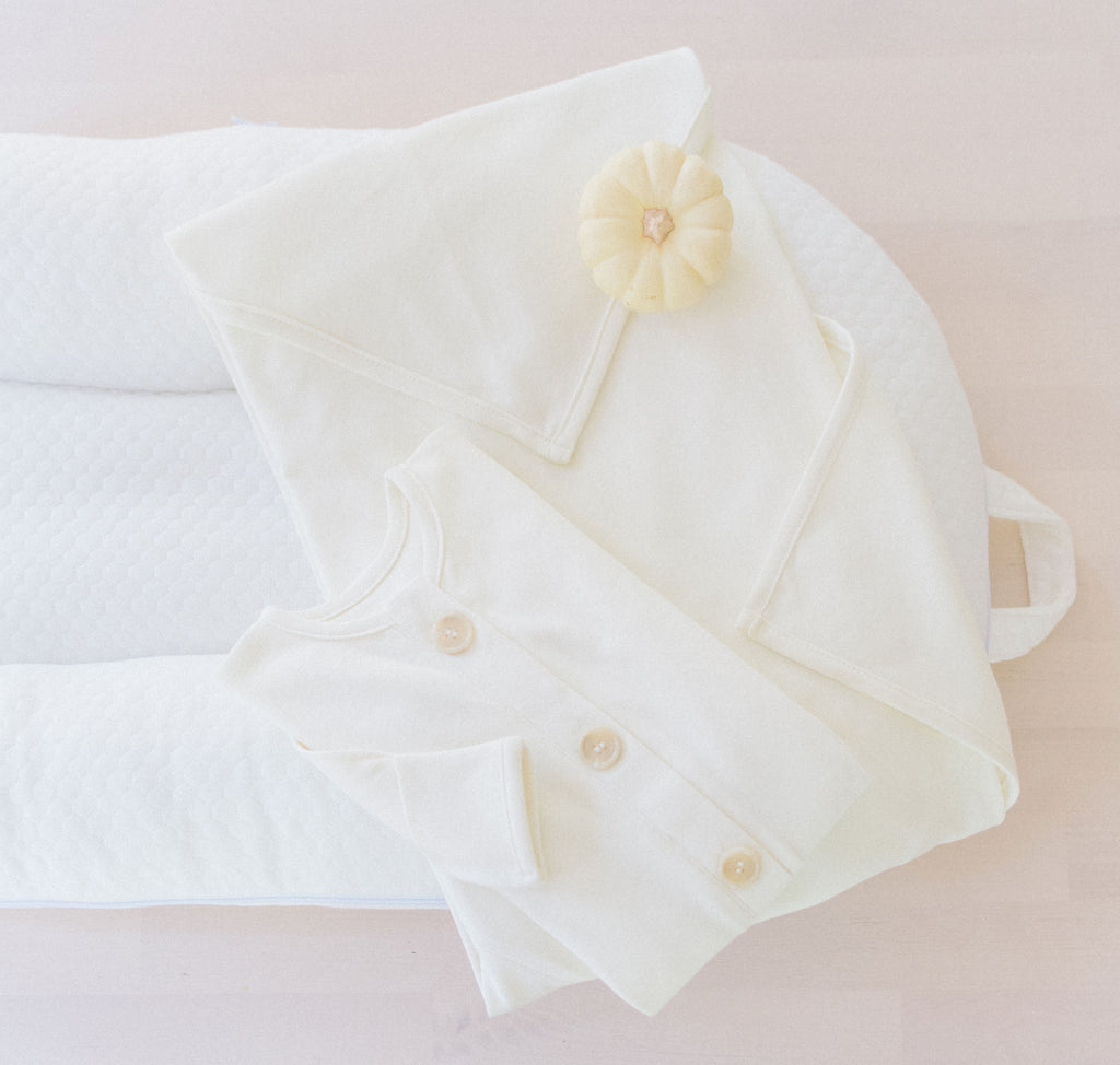 This is an Amazing discounted Bundle of our Moses Pod ,knotted gown, and pre-folded swaddle! Our essentials are the softest you will find! This is an amazing gift and bundle for a newborn.