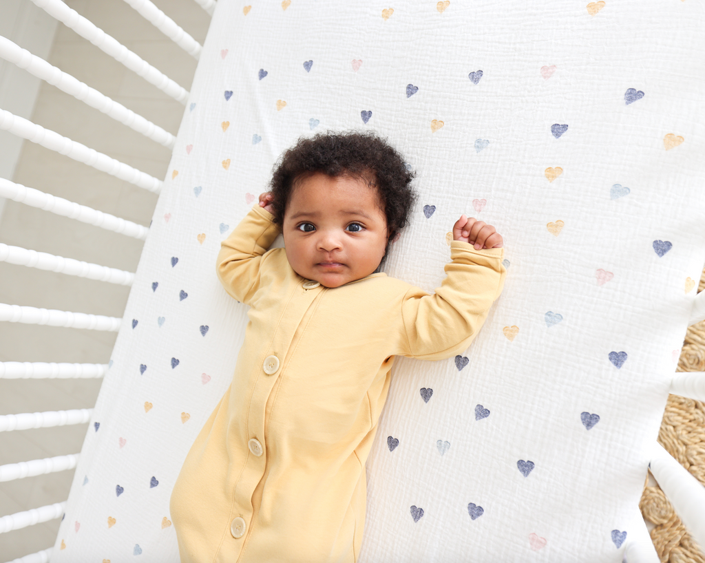 This popular knotted sleeping gown is made with super soft Organic fabric and faux wooden buttons. Light weight with knotted bottom for easy night time nappy changes. Wide enough to enable the baby to sleep in a correct hip position. Features cuff fold over mittens to prevent scratching, and full front opening featuring organic olive tree buttons.