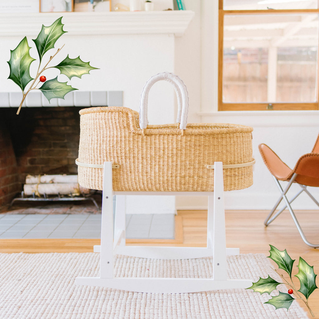 Holiday Signature Bilia Bassinet- Natural (White Leather)