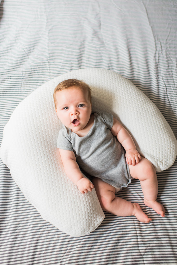 Its versatile shape and generous size mean it will grow with your baby –offering the perfect spot for tummy time, playing, sitting or just discovering little fingers and toes. Its shape provides an ergonomic position to make breastfeeding more comfortable for both you and your little one, and can also be used for optimal bonding when bottle feeding or cuddling.